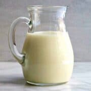 Stirring constantly, simmer for another 30 minutes, scraping the sides often. When the mixture has reduced by about half it will suddenly turn foamy. Keep stirring until the foam subsides and pour mixture into a glass measuring pitcher. You should have 2 cups, if less, you can top with milk and blend to emulsify. If you have more than two cups, return to pan and continue to simmer until reduced to 2 cups.